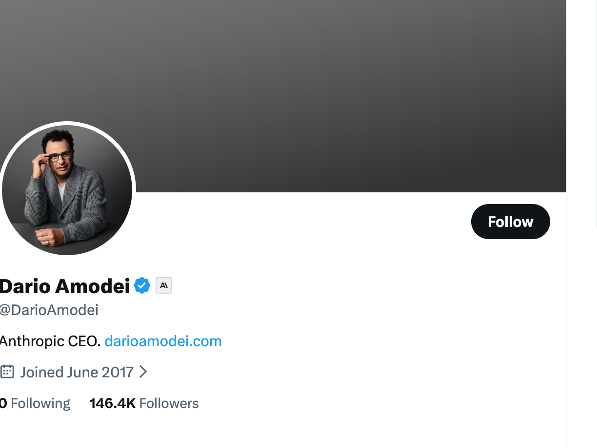 | Dario Amodei | @DarioAmodei | Anthropic CEO |