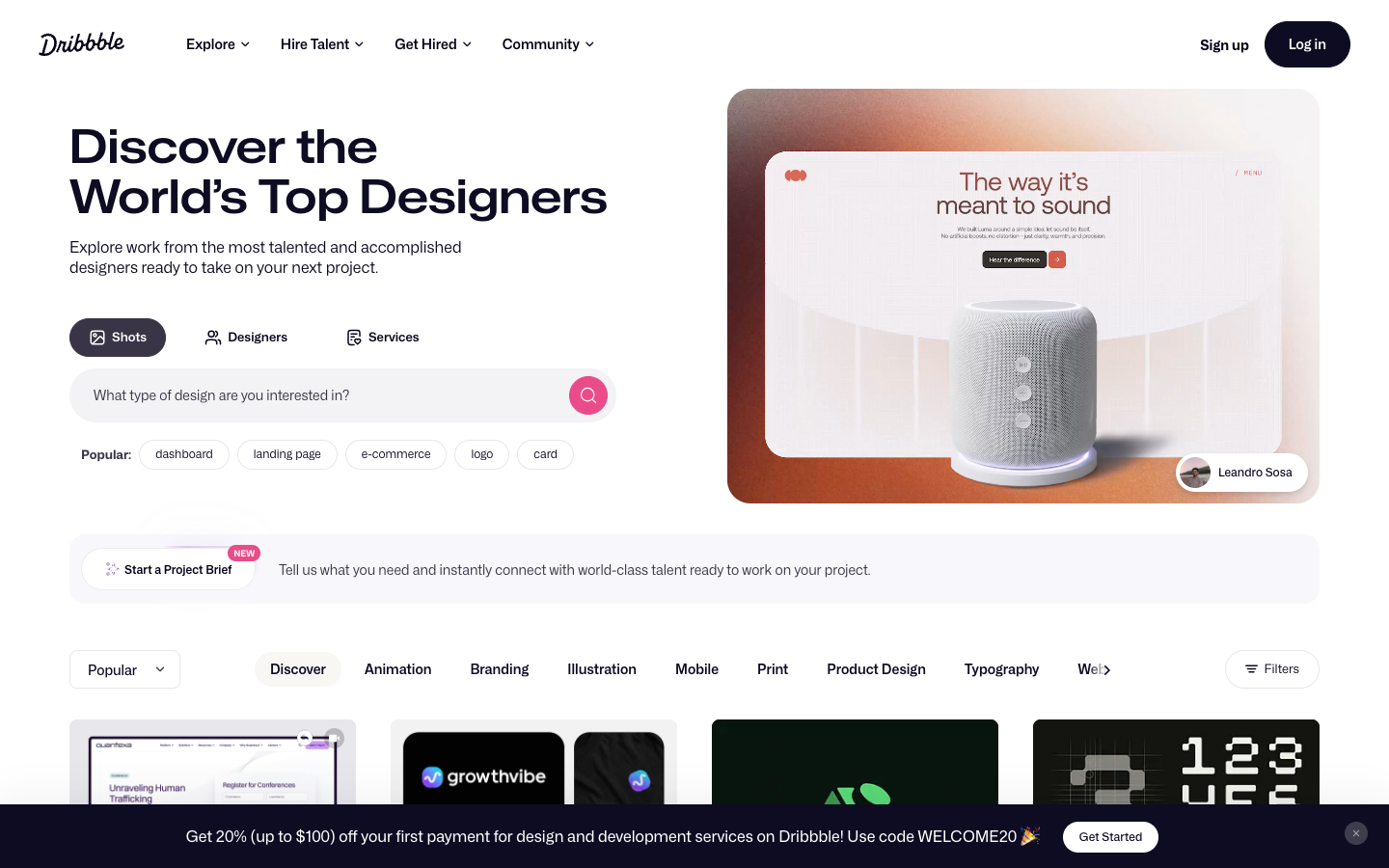 Dribbble is the largest design community, featuring work across product design, web design, branding, and more.