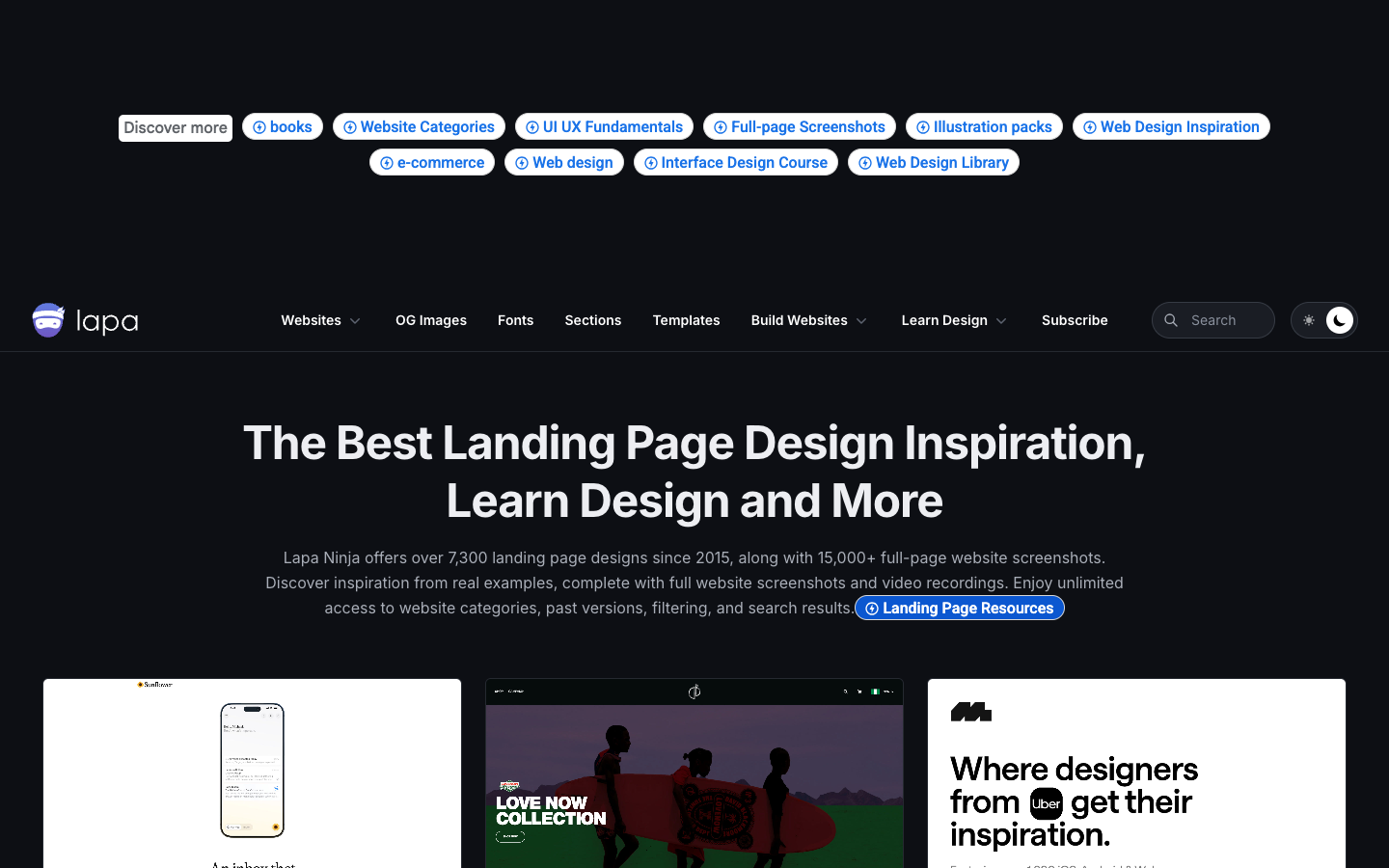 Lapa Ninja has been curating landing pages since 2015, building a library of 7,300+ examples.
