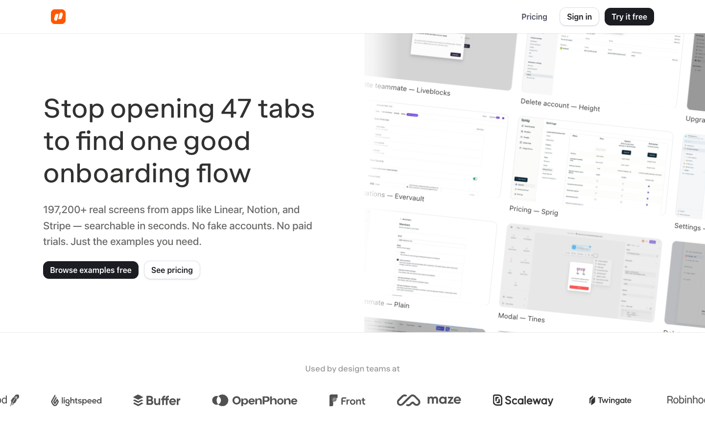 Best for: SaaS product designers who need real-world UI reference. Design teams replacing scattered screenshot collections. UX researchers studying how established products handle specific flows.