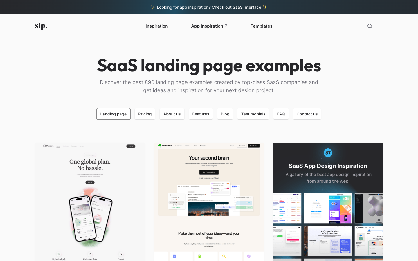 SaaS Landing Page is a free, focused gallery of 890+ landing pages exclusively from SaaS companies and startups.