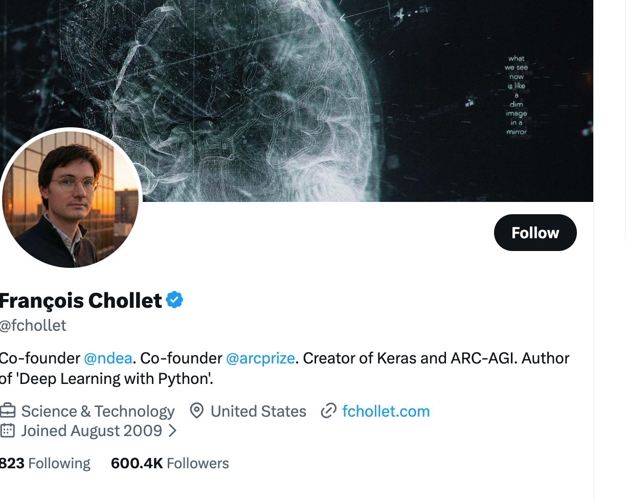 | François Chollet | @fchollet | Keras creator, ARC-AGI |
