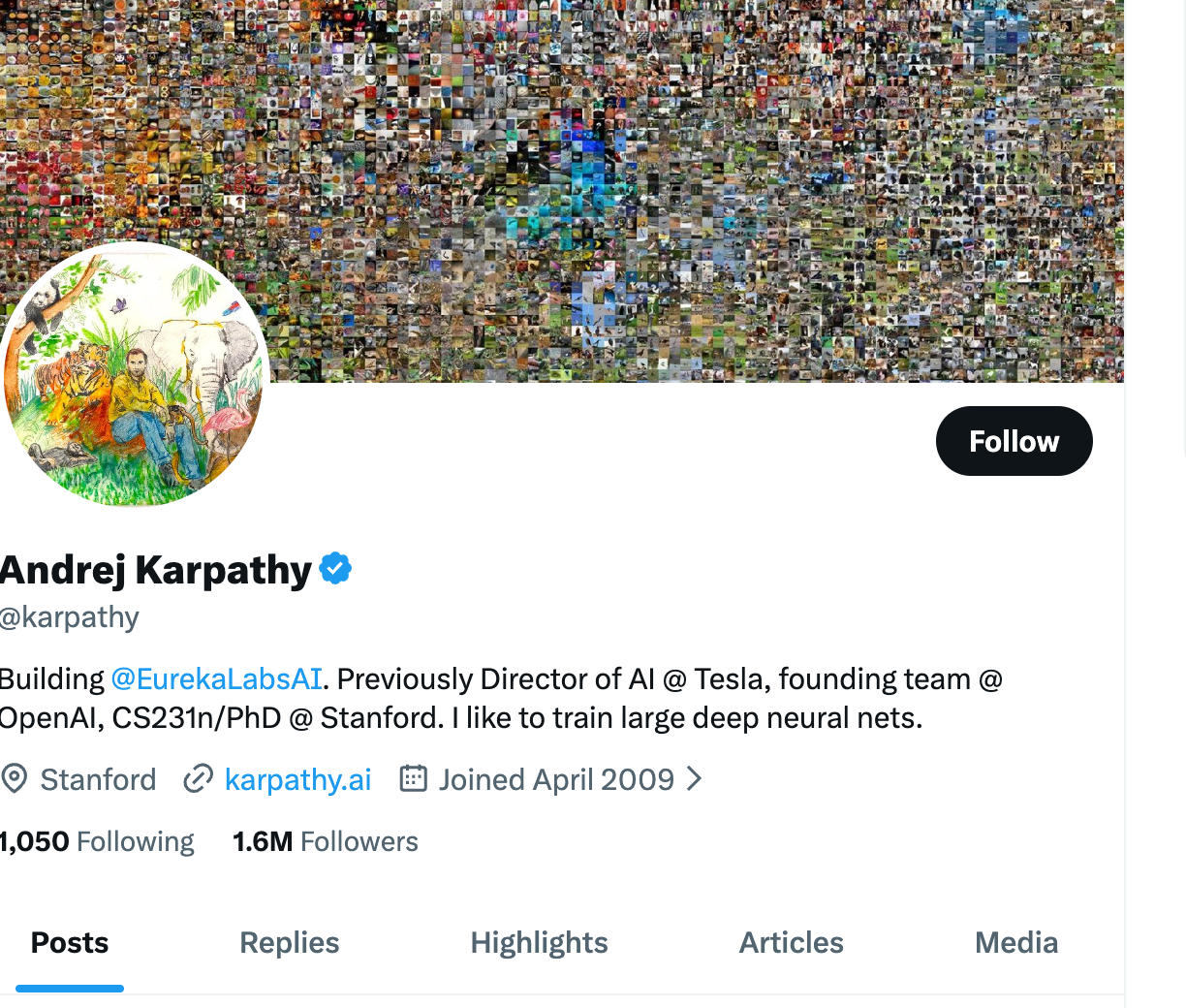 Former Director of AI at Tesla and founding member of OpenAI. Now building Eureka Labs, an AI education company. His posts are educational—he explains complex ML concepts clearly and shares insights from building production AI systems. His YouTube channel and “Neural Networks: Zero to Hero” series are essential resources. 1.6M followers.