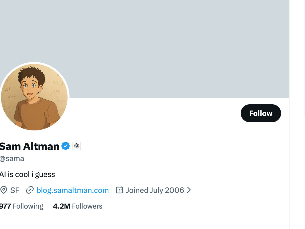 | Sam Altman | @sama | OpenAI CEO |